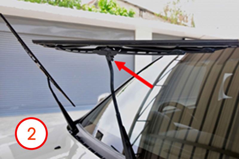 2. หมุนใบปัดน้ำฝนทำมุม 90 องศากับก้านปัดน้ำฝน (จะเห็นสลักเล็ก ๆ)