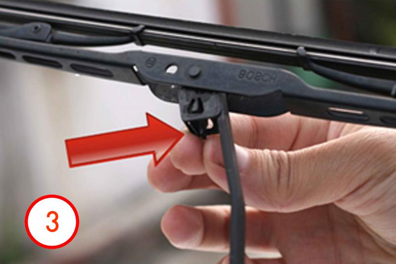 3. บีบสลักเล็ก ๆ พร้อมดันใบปัดน้ำออก