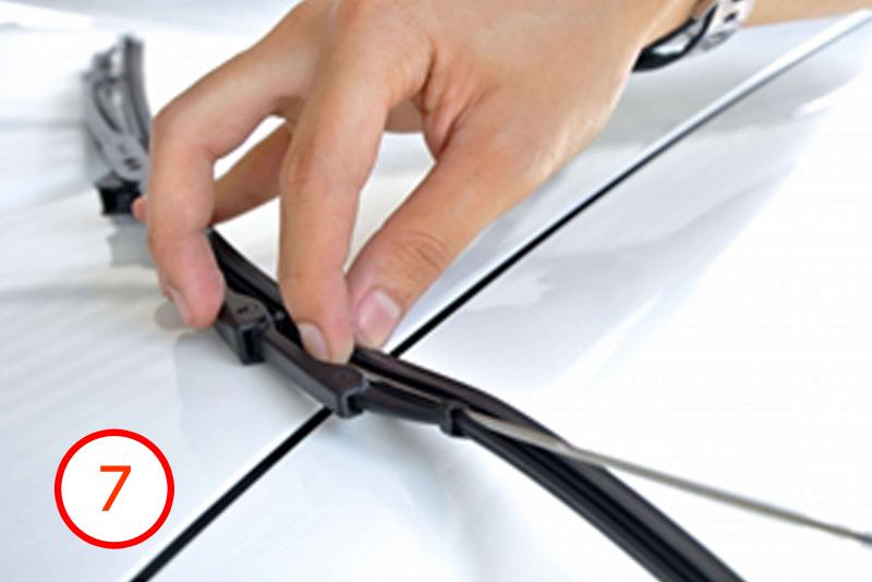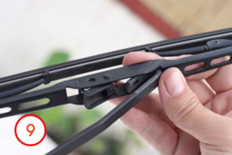 6. ใส่ยางอันใหม่เข้ากับที่ปัดน้ำฝนจดสุด ให้ลงล็อคพอดี