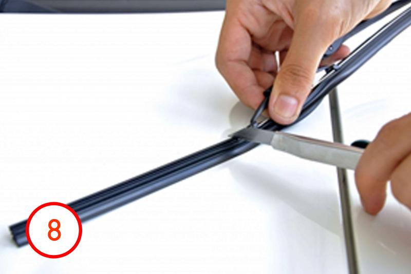 8. ตัดยางส่วนที่เกินออกมาจากใบปัดน้ำฝน