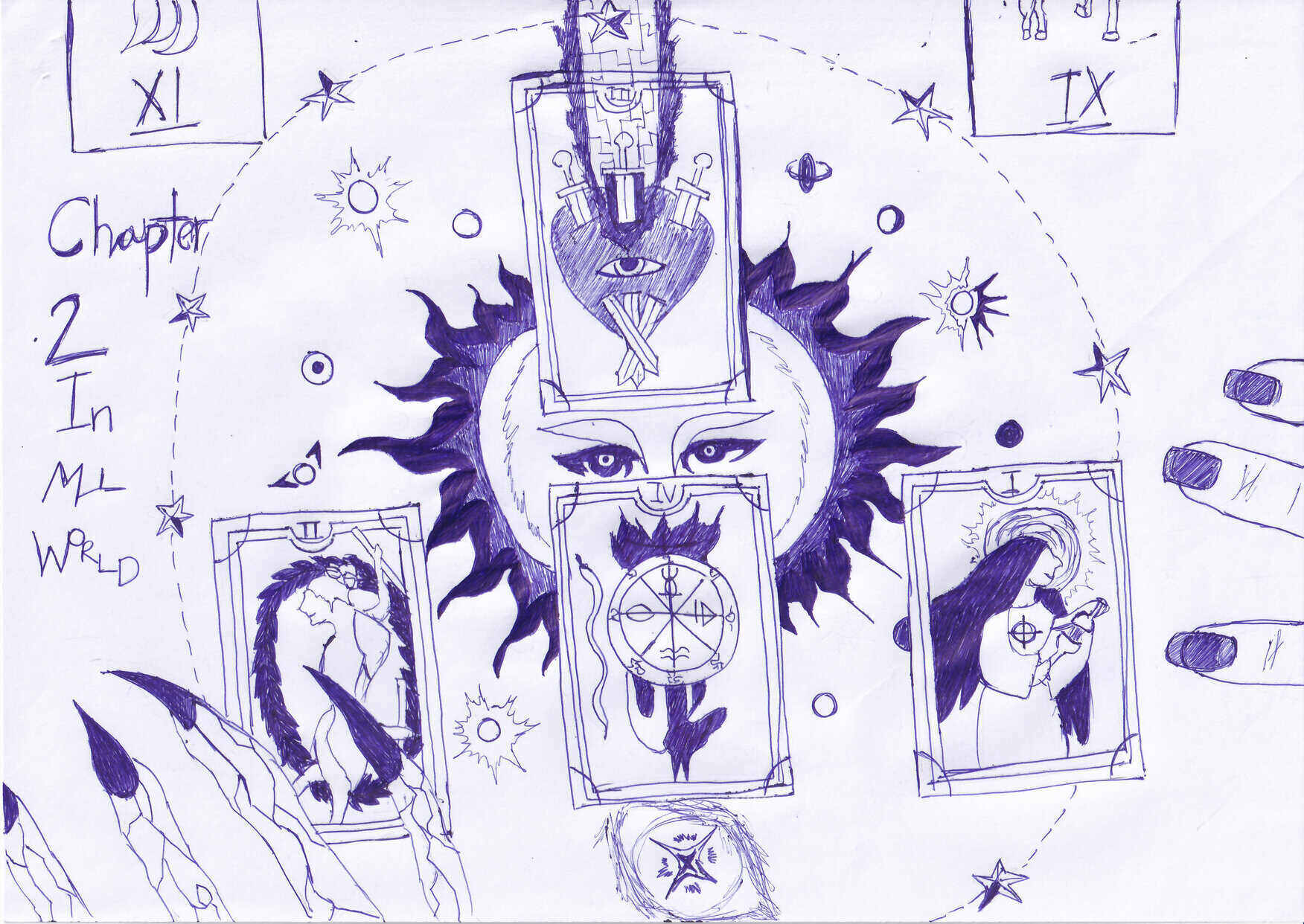 ผ่านมา 1 ปีเต็มที่ฉันไม่มีงานทำ ไปสัมภาษณ์มาก็หลายที่ “เฮ้อ!!” ฉันถอนหายใจออกมาอย่างเบื่อหน่ายแต่ก็ไม่พอที่จะยกภูเขาอันหนักอึ้งออกจากอกในตอนนี้ มือฉันจับราวรถไฟ พยายามทรงตัวให้ดีที่สุด ก็เหมือนกับชีวิตในตอนนี้ โควิดมันทำให้เวลาเดินผ่านไปอย่างรวดเร็ว ทุกอย่างมันผ่านไปอย่างรวดเร็วจนเหมือนจะล้มถ้าไม่ใช่เพราะสายพานเหนือหัวนี่กับมืออันอ่อนเปลี้ย ฉันลงจากรถไฟ มุ่งหน้าเดินออกไปอย่างรู้จุดหมาย ที่ทางออกนั้นฉันเห็นหญิงคนหนึ่ง เส้นผมสีน้ำตาลเข้ากับสีผิวเกือบแทนของเธอและขาเธอมันชั่งเป็นรูปทรงตะเกียบอันน่าสนใจ ฉันเดินเข้าไปใกล้พอที่จะเปล่งเสียงแล้วอีกฝ่ายได้ยิน “ฟาร่า?” เธอคนนั้นหันกลับมา ตกใจเล็กน้อยแต่ก็เริ่มพูดคุยกันถึงเรื่องต่างๆ มันเหมือนเป็นช่วงเวลาของการได้ระบายความรู้สึกที่สั่งสมมานาน พวกเราปิดฉากวันนั้นด้วยการที่ฟาร่าพาฉันไปนั่งที่เก้าอี้ริมถนน ฝั่งตรงข้ามฉันคือหญิงมีอายุที่เพื่อนของฉันมักเรียกเธอว่าแม่ แม่เริ่มสับไพ่ในขณะที่ฉันเริ่มตั้งคำถามในใจ คำตอบของแม่มันทำให้ฉันพึงพอใจพอสมควรจนมาถึงเรื่องความรัก แม้ตอนนั้นจะไม่ใช่สิ่งที่น่าสนใจแต่ก็อยากลองดูเพราะยังไงก็เสียเงินไปแล้ว ไพ่ที่เปิดออกมาดีไปหมดแต่มีสิ่งหนึ่งที่น่าสนใจ หัวใจและดาบ 3 เล่มที่ปักลง “ความรักของเธอจะเป็นรัก 3 เส้าเสมอ ไม่ว่าจากทางเธอเองหรือจากทางเขา”